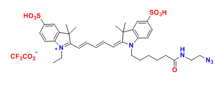 各種花青5(Cy5)染料已用于標(biāo)記生物分子,用于熒光成像和其他基于熒光的生化分析。它們廣泛用于標(biāo)記肽,蛋白質(zhì)和寡核苷酸等。Cy5 染料是最常見的紅色熒光團(tuán)中的一種。這些多功能熒光團(tuán)可以耐受3-10的pH范圍,用于生物相關(guān)pH的各種應(yīng)用。該染料還具有DMSO耐受性和光穩(wěn)定性,能夠在不損失性能的情況下從儲存轉(zhuǎn)移至分析。水溶性消除了在測定緩沖液中對有機溶劑的需要。我們的Cy5染料經(jīng)過全面QC測試,可確保高水平的發(fā)色團(tuán)和活性染料含量。單活性染料適用于蛋白質(zhì)和寡核苷酸的靶向,精確標(biāo)記,雙活性染料更適合于一般標(biāo)記。建議使用NHS酯染料標(biāo)記胺基,建議使用馬來酰亞胺染料標(biāo)記硫醇基團(tuán)。該Cy5 疊氮化物選擇性地與炔基反應(yīng)。